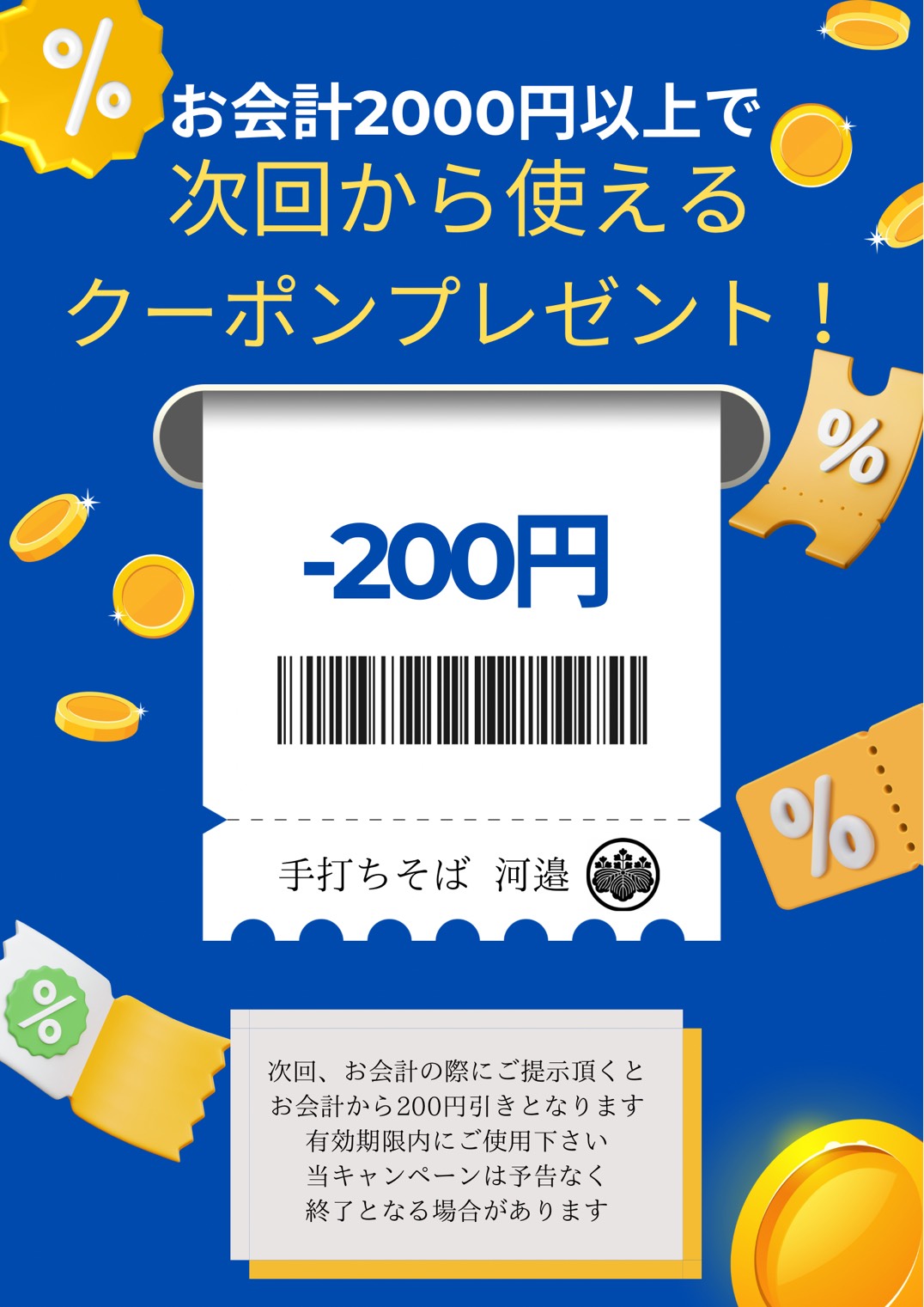 石臼挽き自家製粉・手打ちを”河邉の掟”としています。